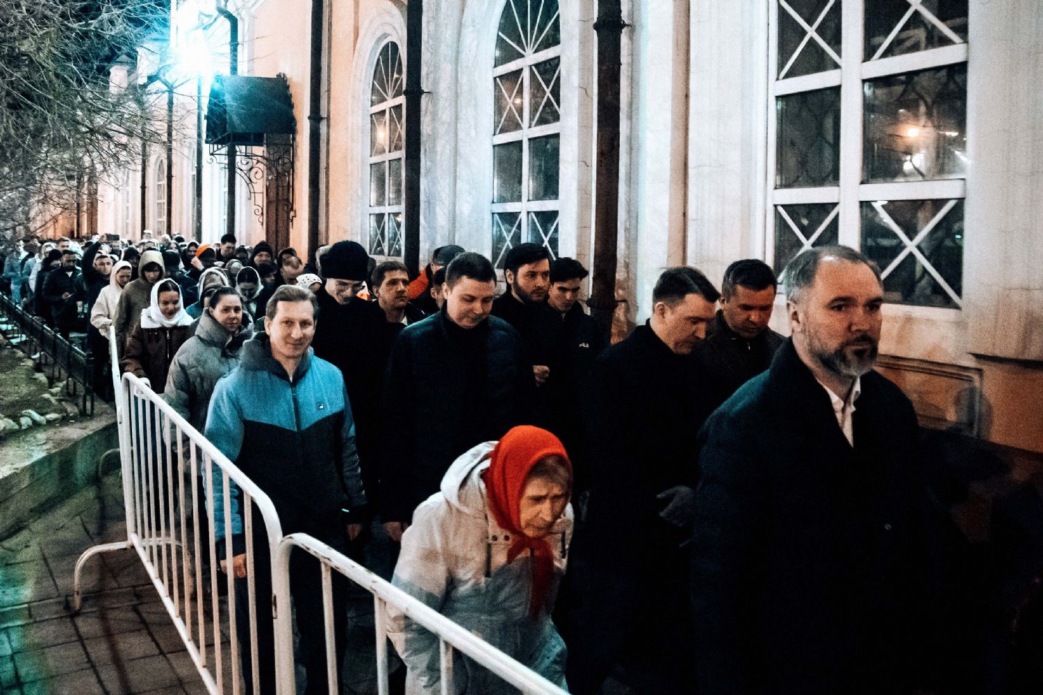 Сотни верующих собрались под сводами Богоявленского кафедрального собора ещё до начала богослужения. Под звон колоколов крестным ходом вокруг собора вместе с Главой Томской митрополии, духовенством, семинаристами и прихожанами прошёл Губернатор Томской области Владимир Мазур с супругой, мэр г. Томска Дмитрий Махиня, а также другие представители областной и городской властей. Все присутстовавшие продолжили молитвенную встречу Пасхи Христовой в верхнем приделе Богоявленского собора.