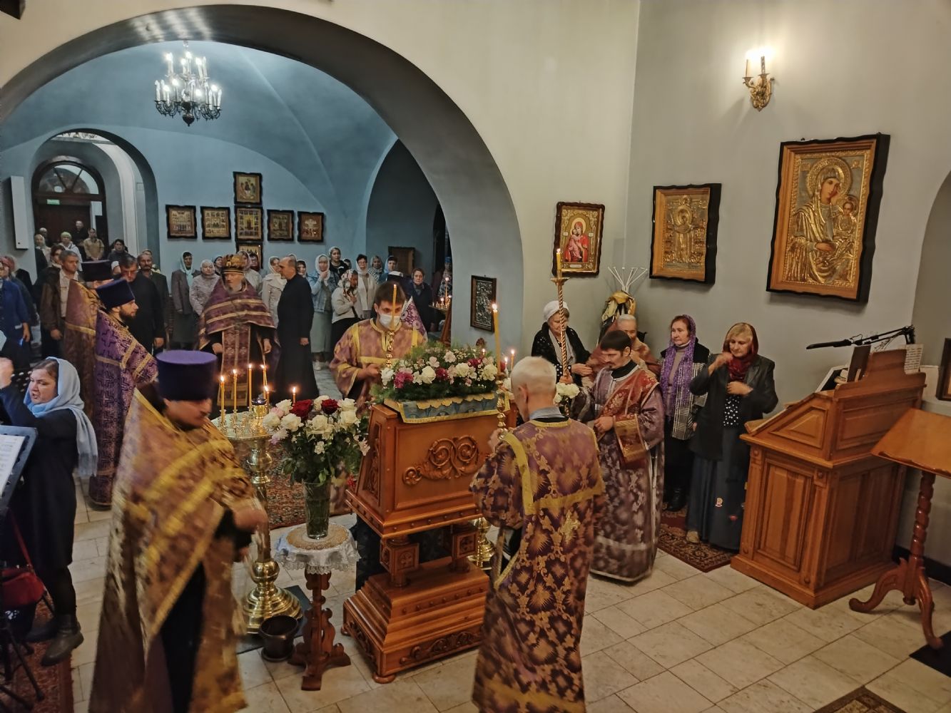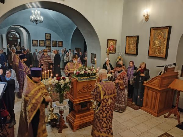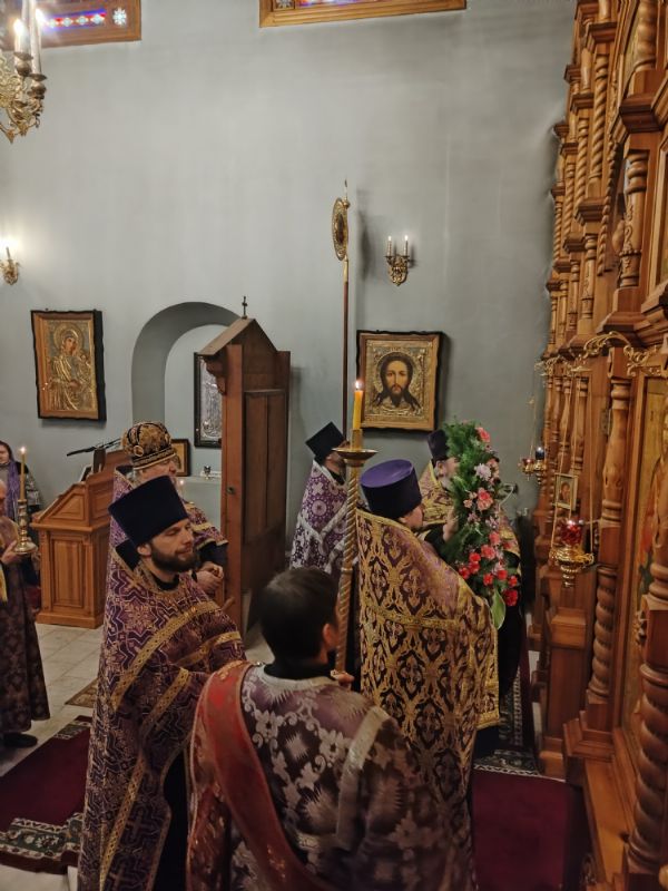 По окончании вечернего богослужения был совершен торжественный вынос Креста, которому смогли поклониться все собравшиеся в храме верующие. Молитвенное пение «Кресту Твоему покланяемся, Владыко, и святое Воскресение Твое славим» объединило под сводами храма множество прихожан.