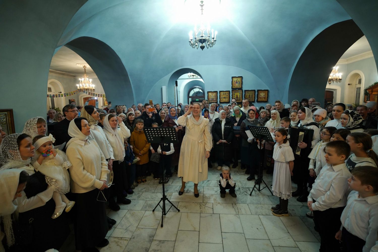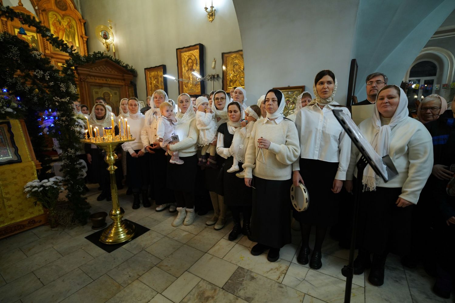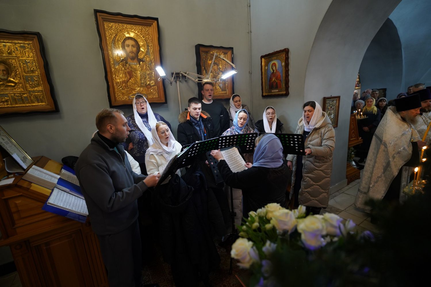 Богослужебные песнопения исполнил хор Знаменского храма под управлением регента Марины Гайделис. Их мастерство и молитвенное пение, особенно торжественный и покаянный ирмос «Христос раждается, славите!», создали возвышенную атмосферу, помогающую сердцу прикоснуться к величайшему чуду — явлению Бога во плоти ради спасения человеческого рода.