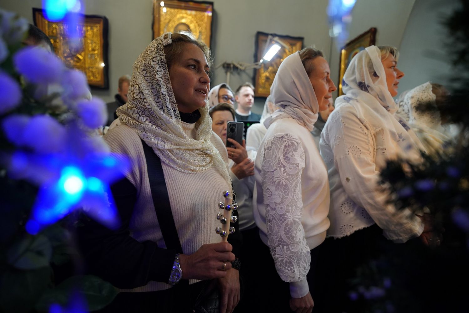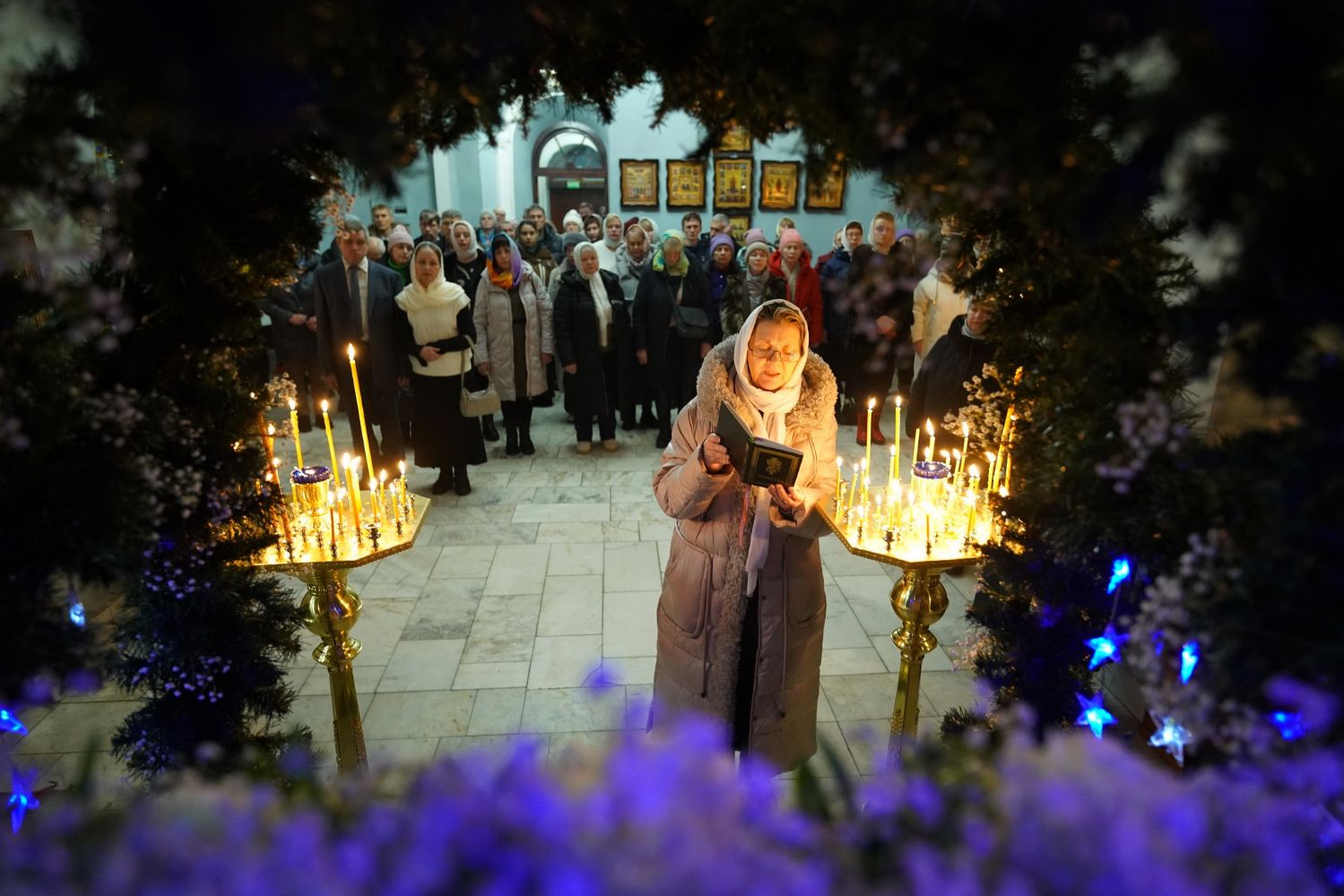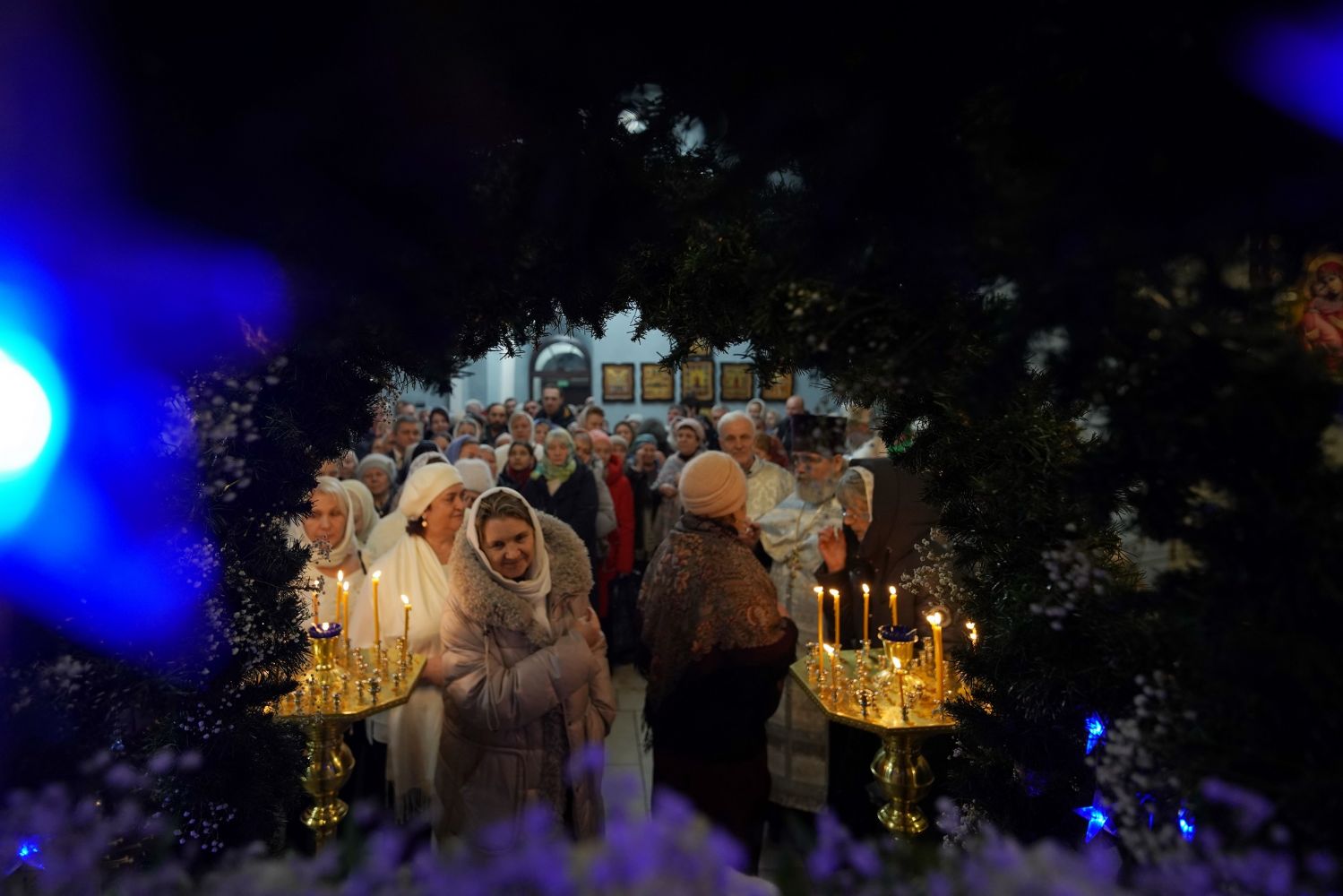 Богослужебные песнопения исполнил хор Знаменского храма под управлением регента Марины Гайделис. Их мастерство и молитвенное пение, особенно торжественный и покаянный ирмос «Христос раждается, славите!», создали возвышенную атмосферу, помогающую сердцу прикоснуться к величайшему чуду — явлению Бога во плоти ради спасения человеческого рода.