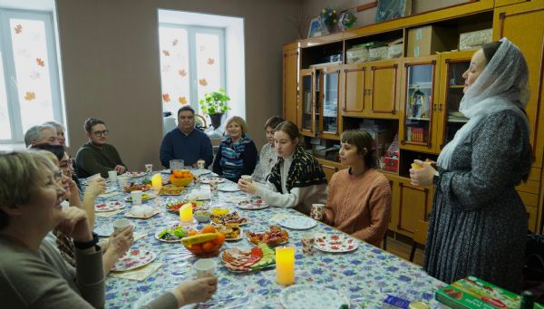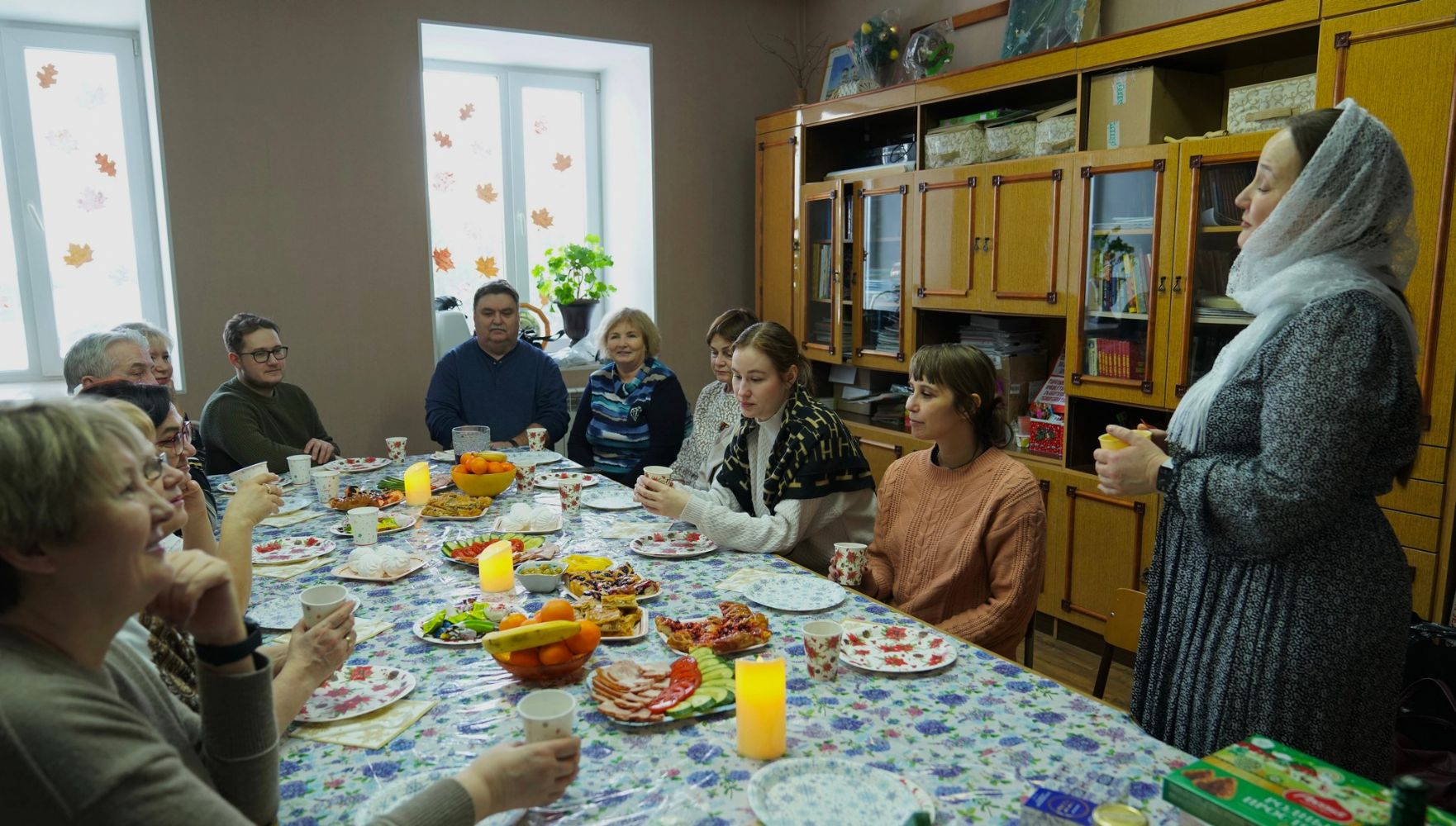 Встреча состоялась 8 января в уютном помещении воскресной школы Знаменского храма. За празднично накрытым столом царила по-настоящему дружественная и теплая атмосфера, способствующая открытому диалогу и сердечному общению.