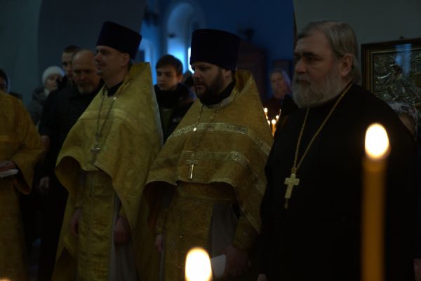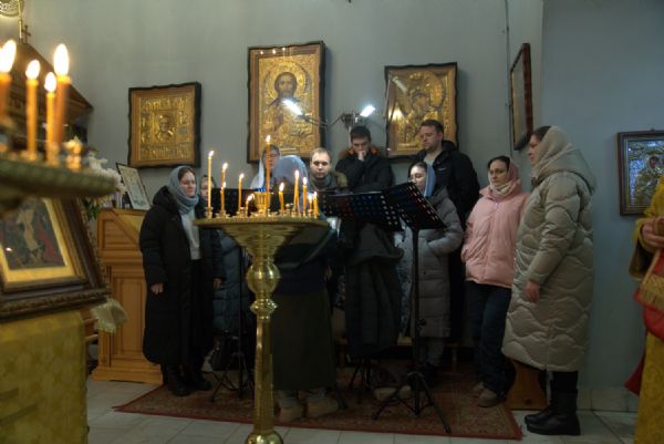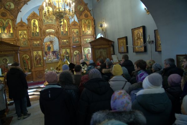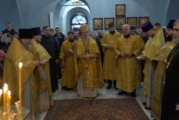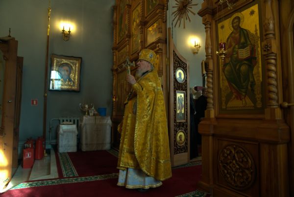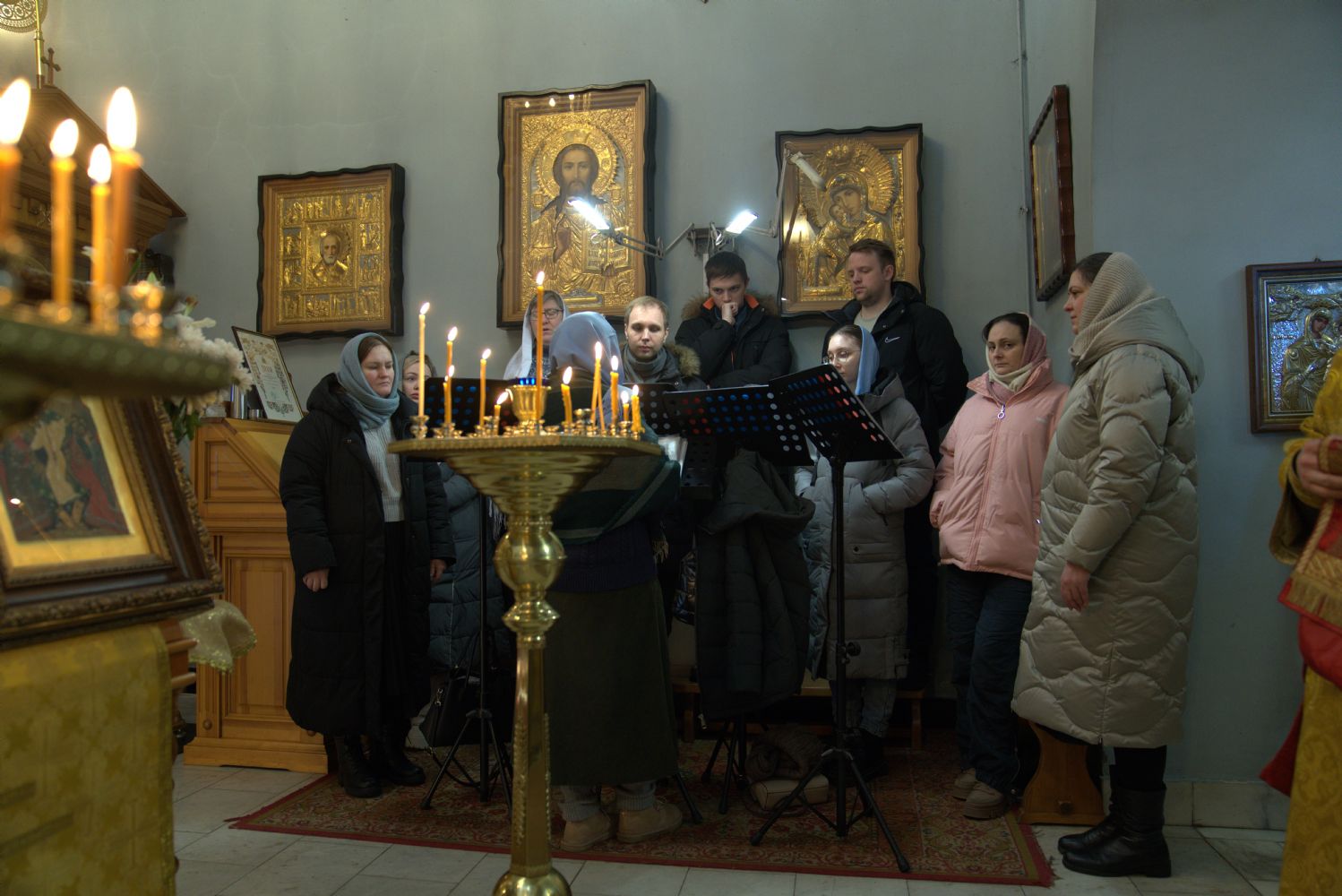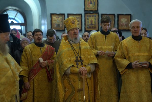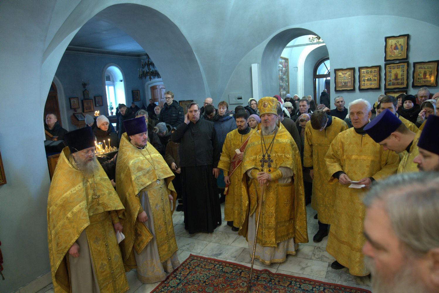 Богослужение возглавил настоятель храма митрофорный протоиерей Николай Яськов в сослужении духовенства храма. Несмотря на подготовительный статус дня, Литургия совершалась по воскресному чину, но с особенностями, приуготовляющими верующих к вступлению в великопостное поприще.