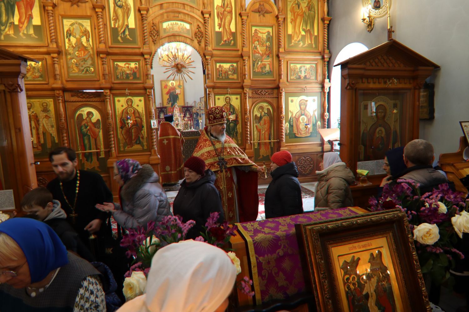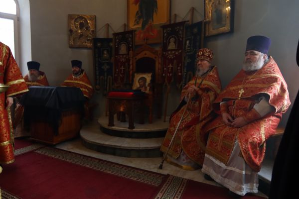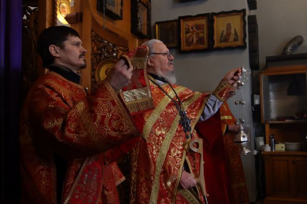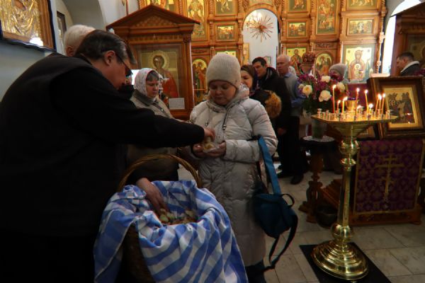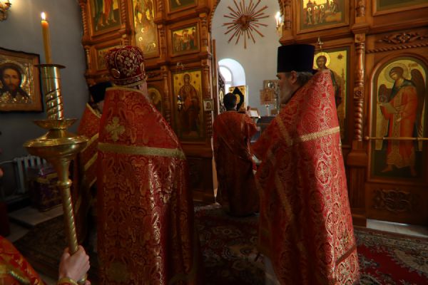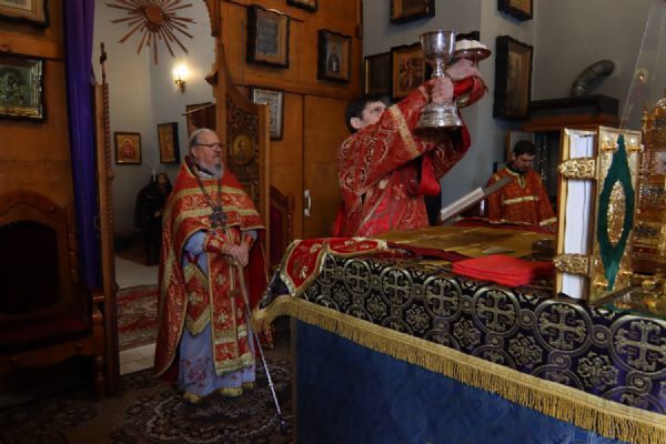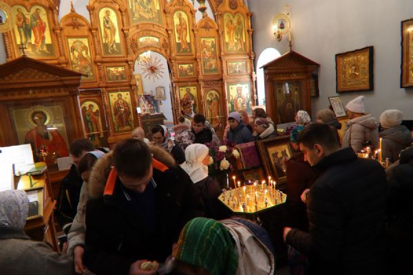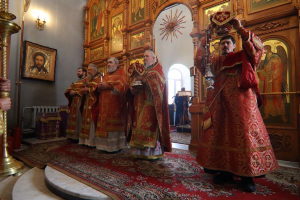 Возглавил Литургию настоятель прихода протоиерей Николай Яськов. Ему сослужило духовенство храма. В этот великопостный воскресный день храм был наполнен молящимися: верующие собрались, чтобы соединиться во Христе в таинстве Евхаристии и прославить святых воинов, явивших миру образец несокрушимой веры.