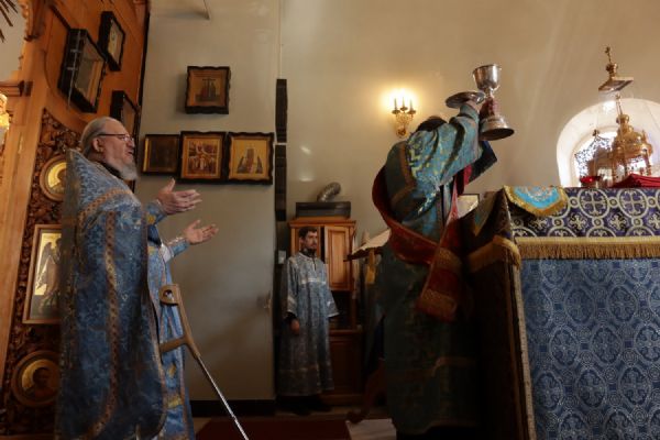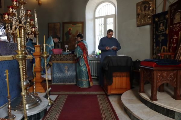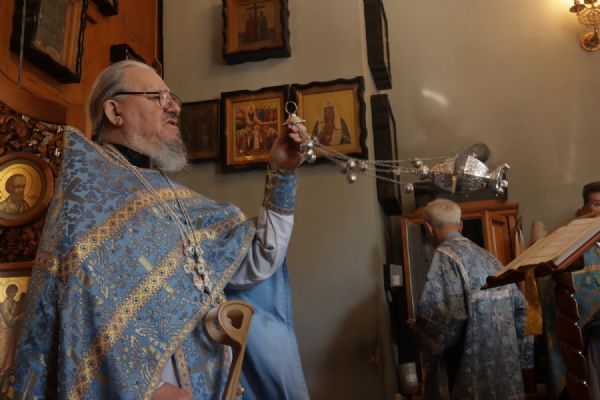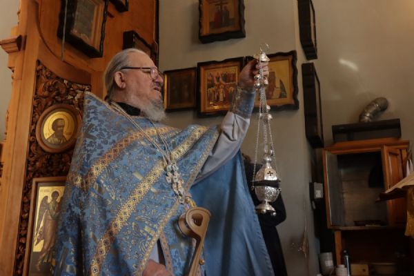 За богослужением были вознесены сугубые молитвы о мире и благополучии Отечества. После сугубой ектении настоятель прочитал молитву о Святой Руси.