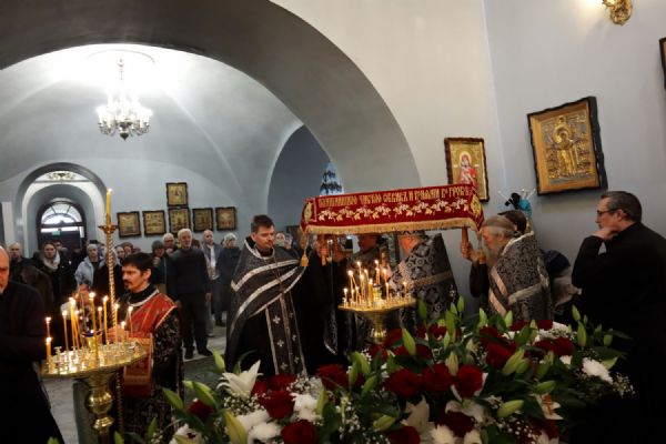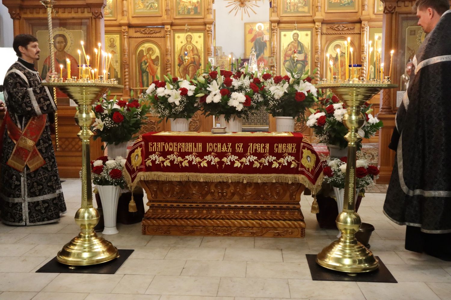 В канун Великой субботы, в день воспоминания Святых спасительных Страстей Господних, в Знаменском храме была совершена Великая вечерня с чином выноса Святой Плащаницы. Это одно из самых скорбных и трепетных богослужений церковного года, посвященное снятию с креста и погребению Тела Иисуса Христа .