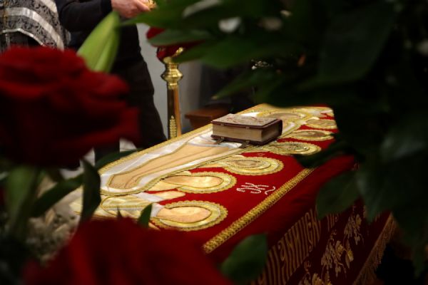 По окончании вечерни священнослужители и все молящиеся поклонились перед Плащаницей и приложились к ней, лобызая изображения язв Господних — прободенных ребер, рук и ног Спасителя .