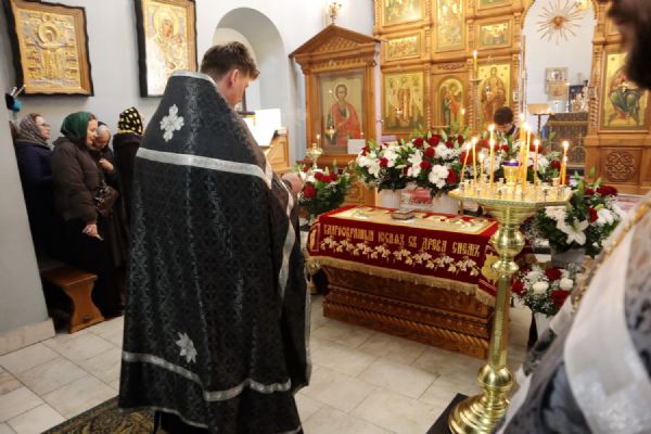 290В Неделю Торжества Православия в Знаменском храме совершена Божественная литургия и молебен святителю Макарию (Невскому)