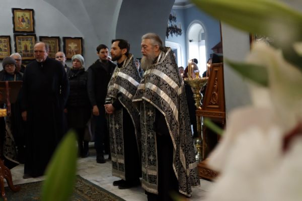 Затем было совершено малое повечерие, на котором прочитали канон «О распятии Господа и на плач Пресвятой Богородицы» . Настоятель храма обратился к прихожанам со словом назидания, призвав верующих с благоговением проводить эти скорбные часы перед Пасхой .