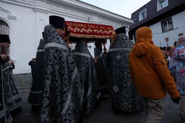 В канун Великой субботы в Знаменском храме совершили чин погребения Плащаницы с крестным ходом
