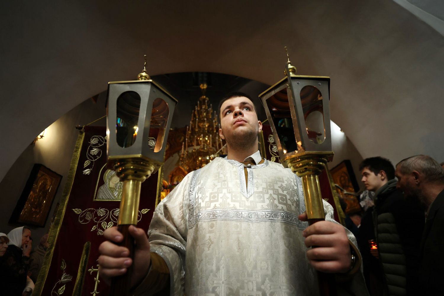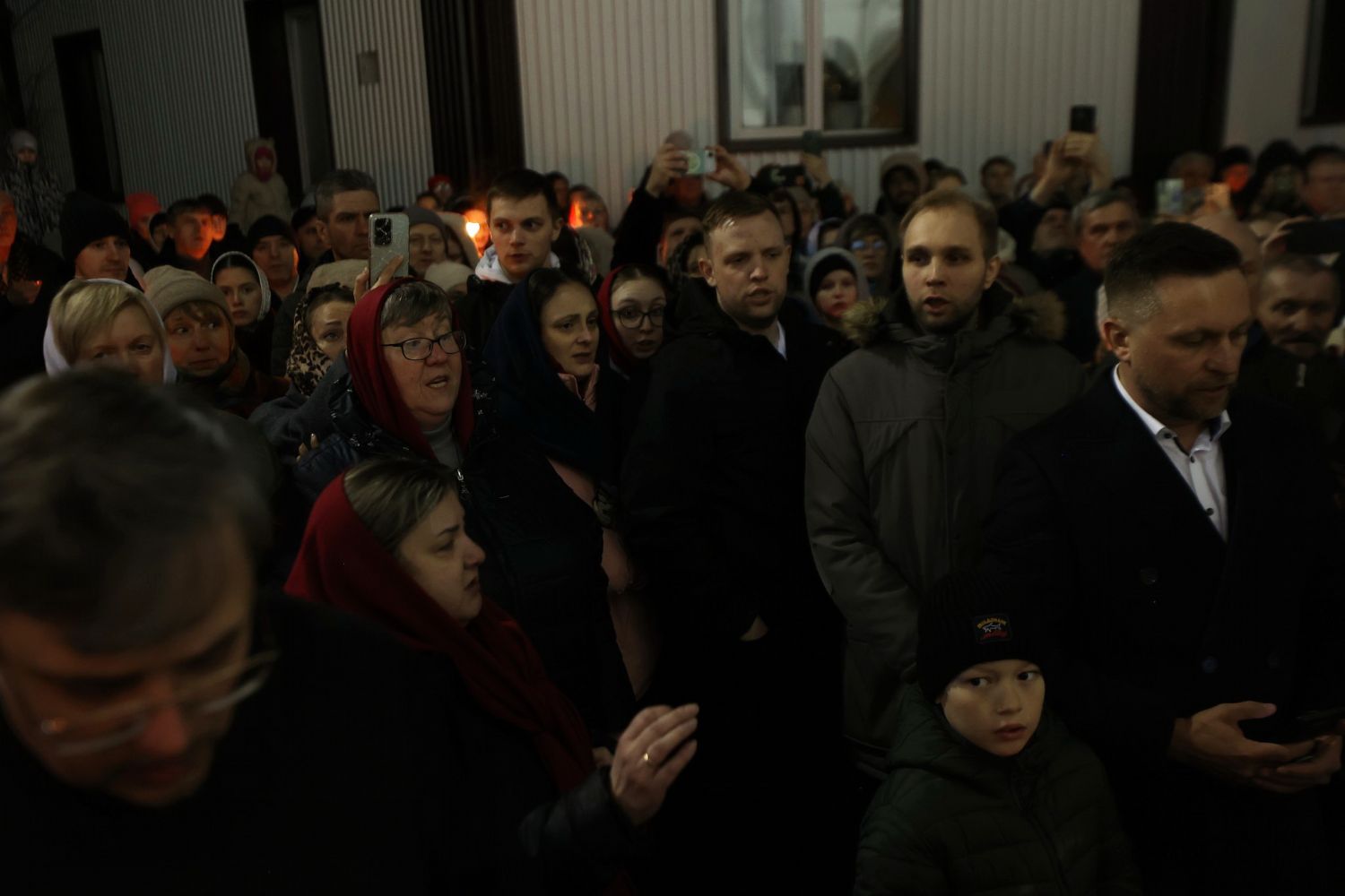 Пасхальное богослужение началось с полунощницы, которая совершилась незадолго до полуночи. Во время этой службы священнослужители перенесли Святую Плащаницу с середины храма в алтарь, где она будет находиться до праздника Вознесения Господня, знаменуя собой сорокадневное пребывание Воскресшего Спасителя на земле .