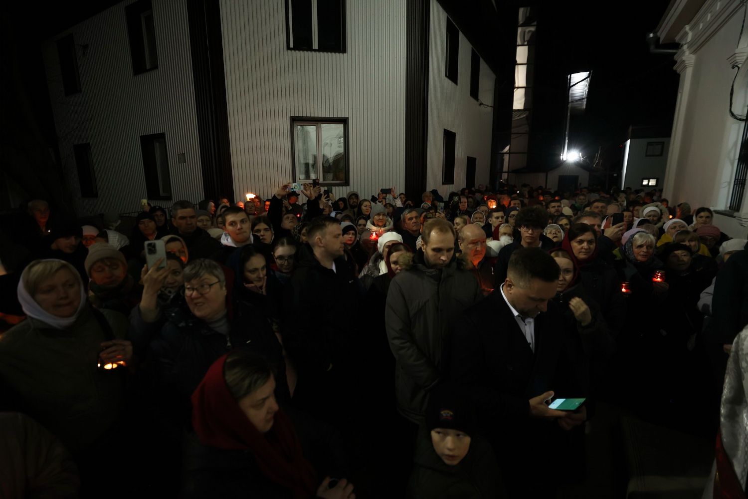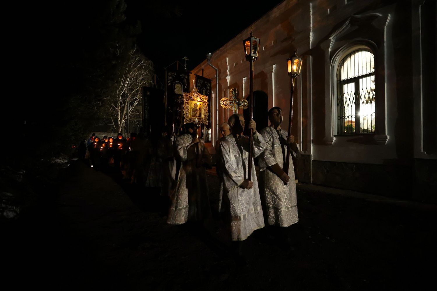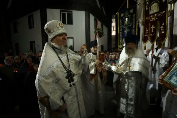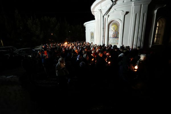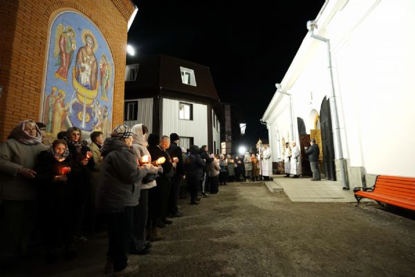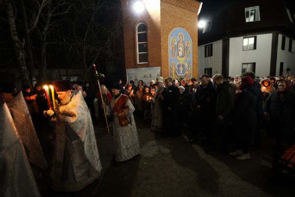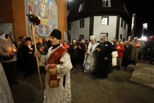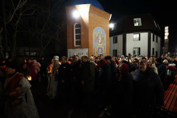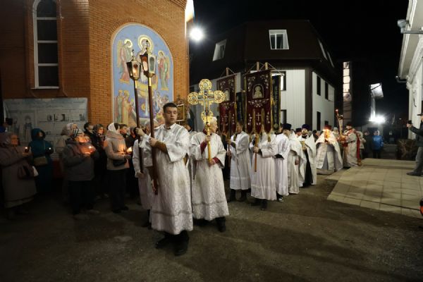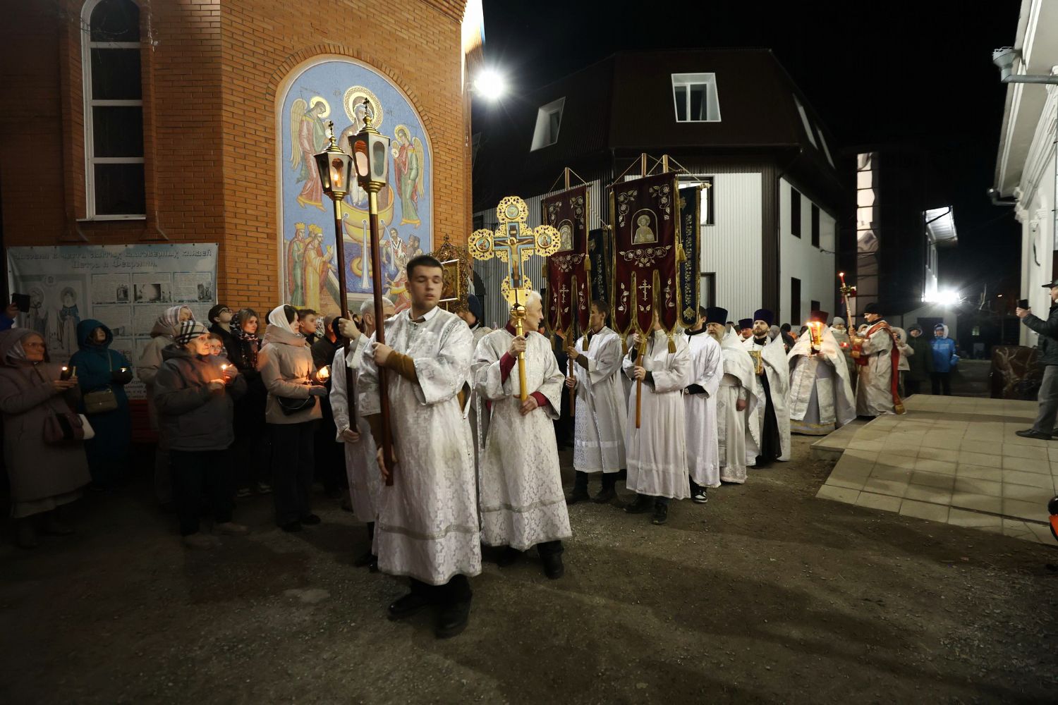 Ровно в полночь, при пении стихиры «Воскресение Твое, Христе Спасе», духовенство и многочисленные прихожане с зажженными свечами, хоругвями и иконами вышли из храма, чтобы совершить торжественное шествие вокруг него. Пасхальный крестный ход сопровождался радостным колокольным трезвоном .