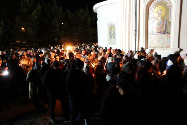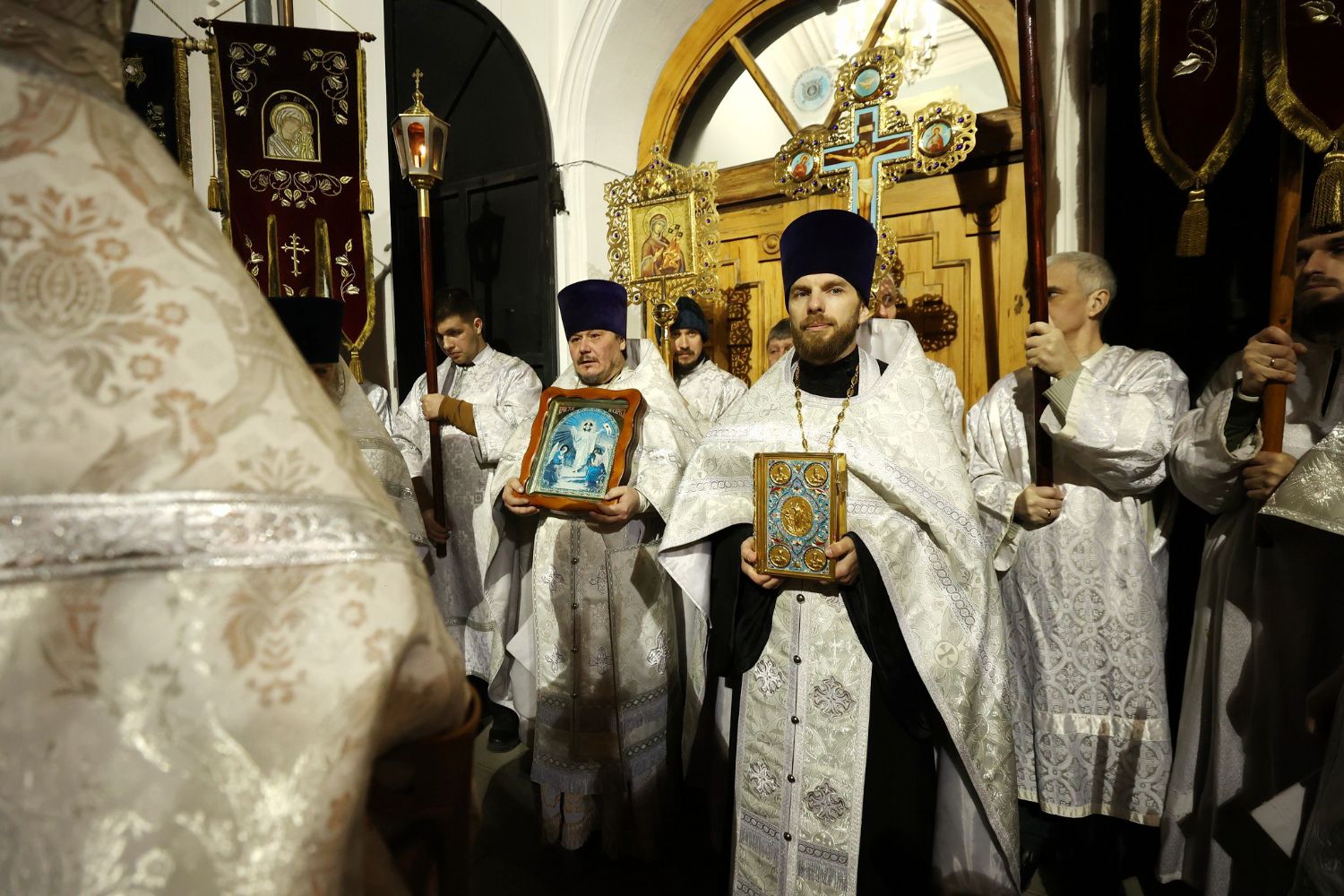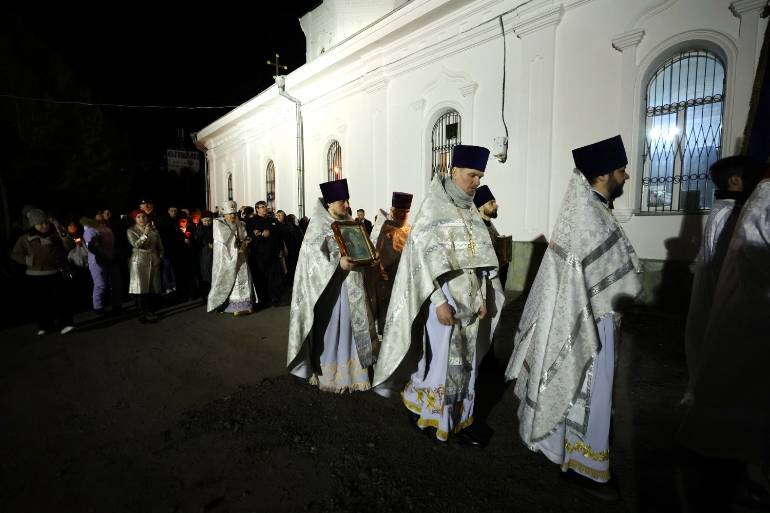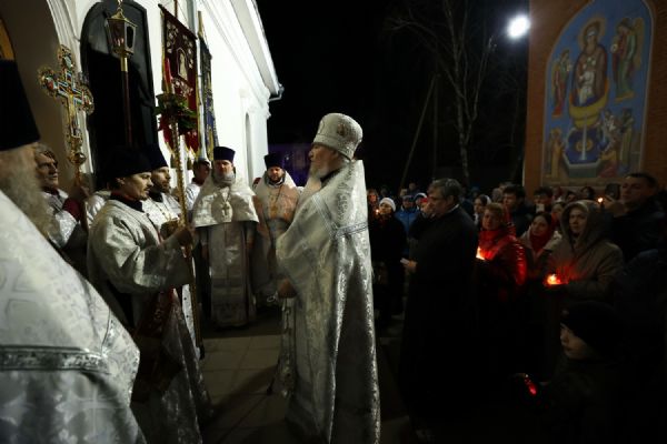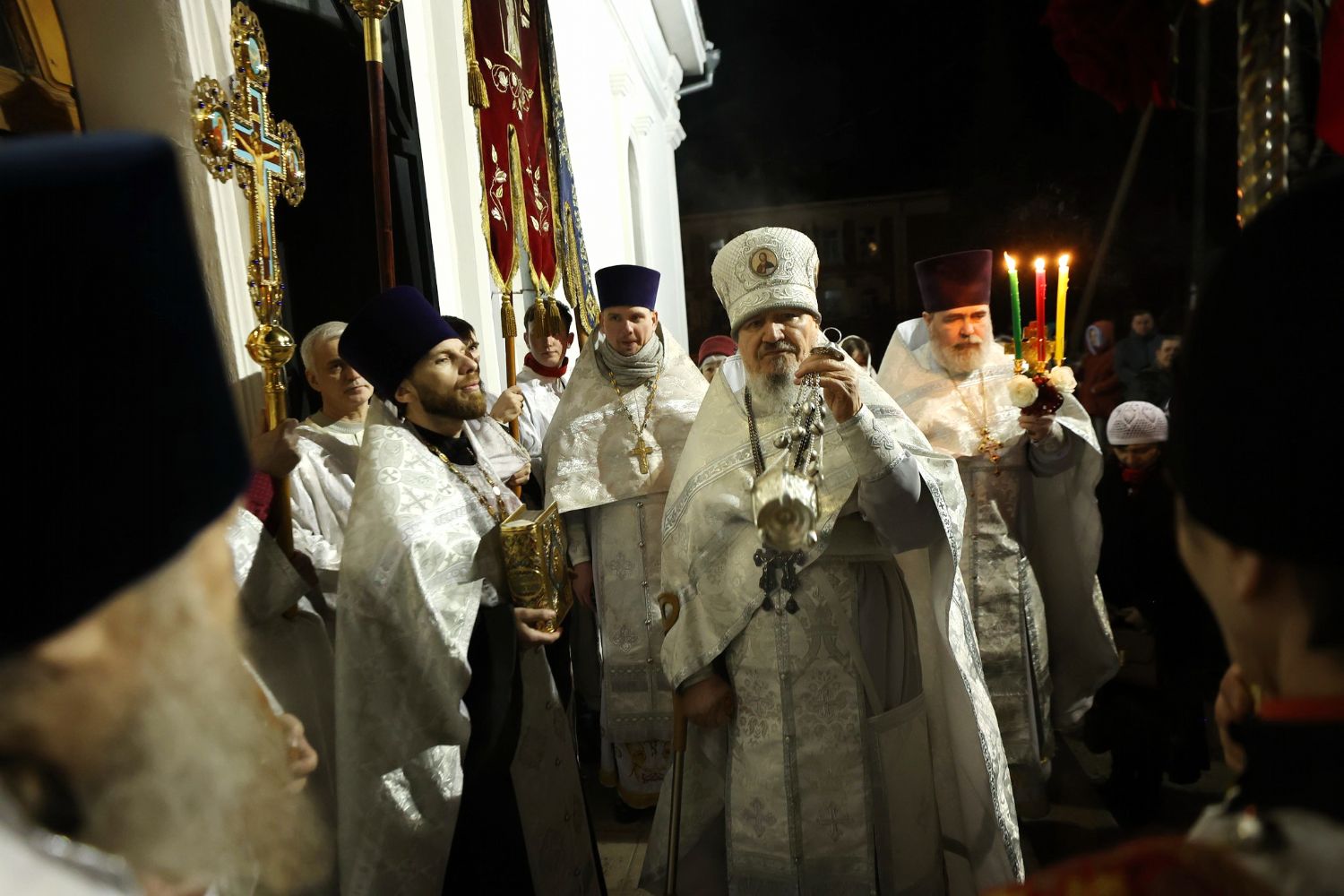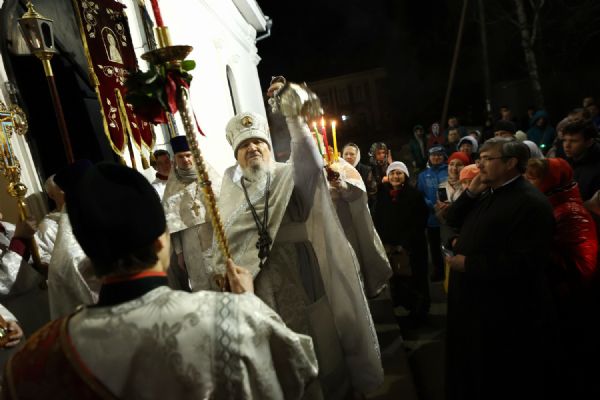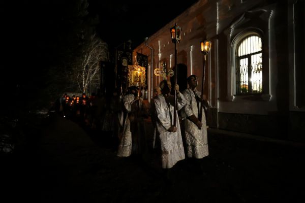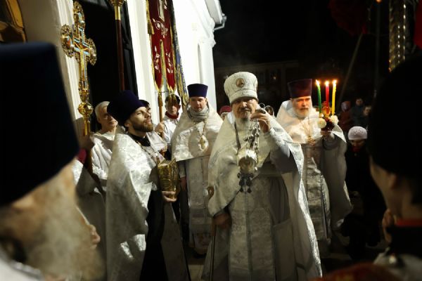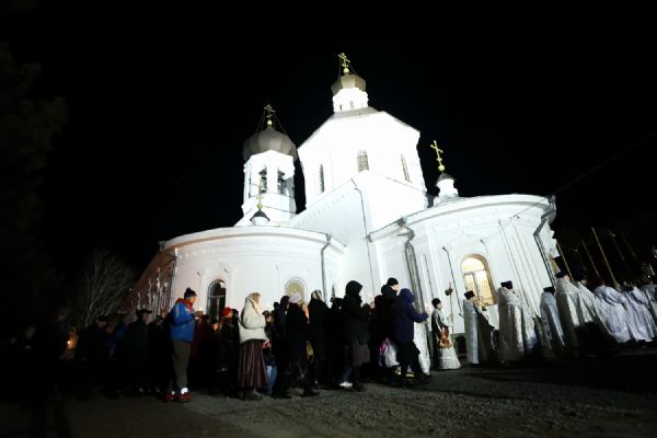 Ровно в полночь, при пении стихиры «Воскресение Твое, Христе Спасе», духовенство и многочисленные прихожане с зажженными свечами, хоругвями и иконами вышли из храма, чтобы совершить торжественное шествие вокруг него. Пасхальный крестный ход сопровождался радостным колокольным трезвоном .