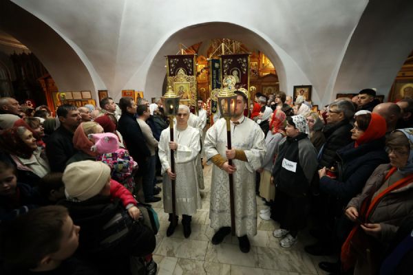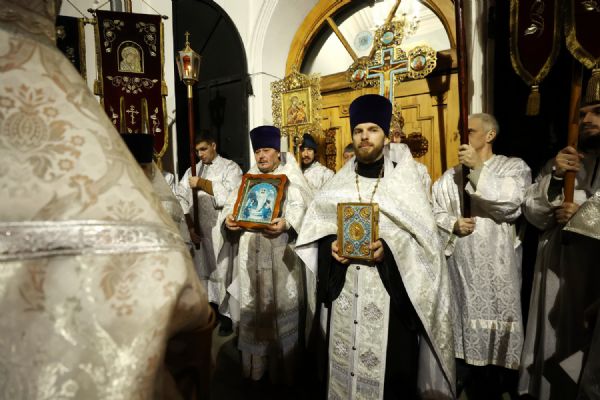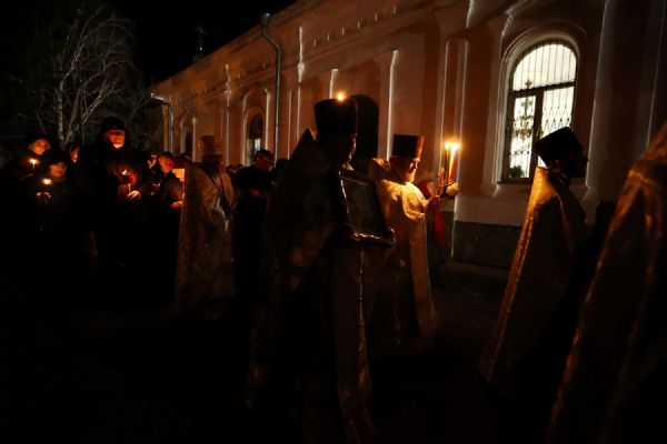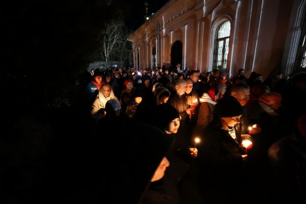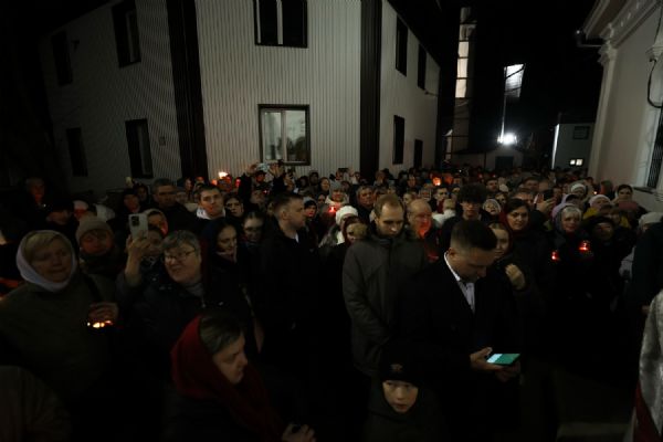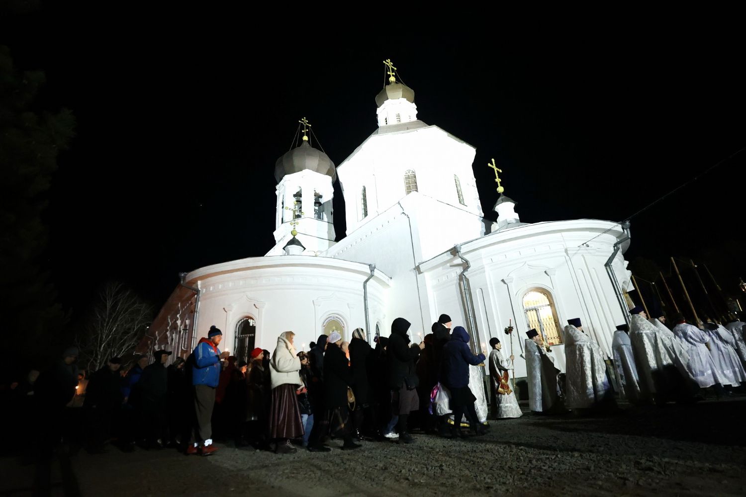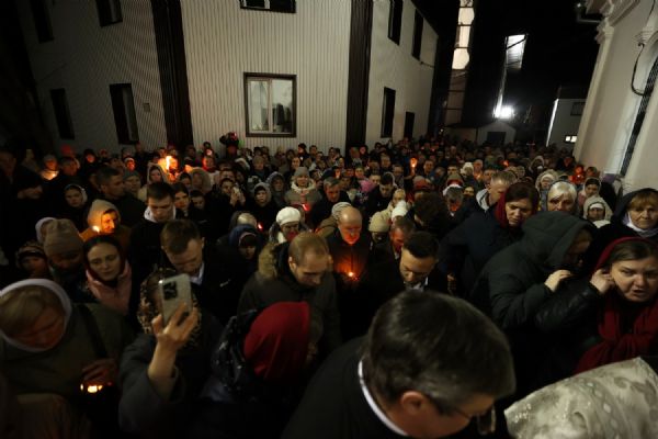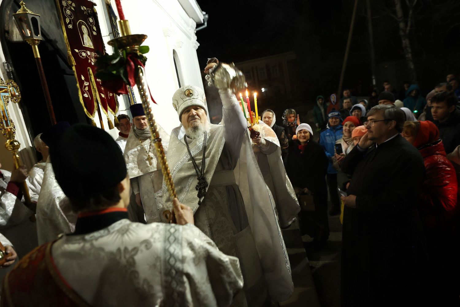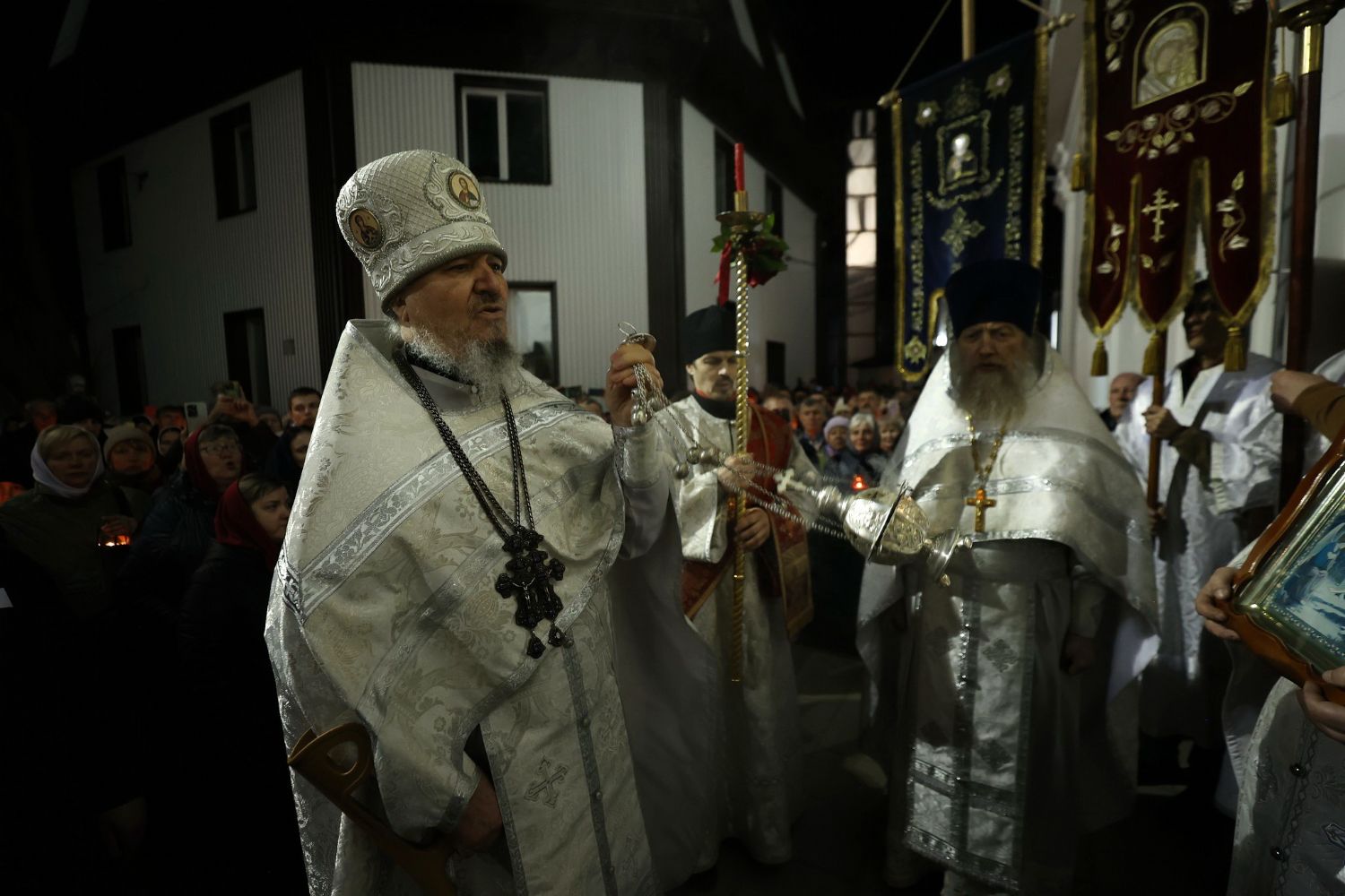 Ровно в полночь, при пении стихиры «Воскресение Твое, Христе Спасе», духовенство и многочисленные прихожане с зажженными свечами, хоругвями и иконами вышли из храма, чтобы совершить торжественное шествие вокруг него. Пасхальный крестный ход сопровождался радостным колокольным трезвоном .