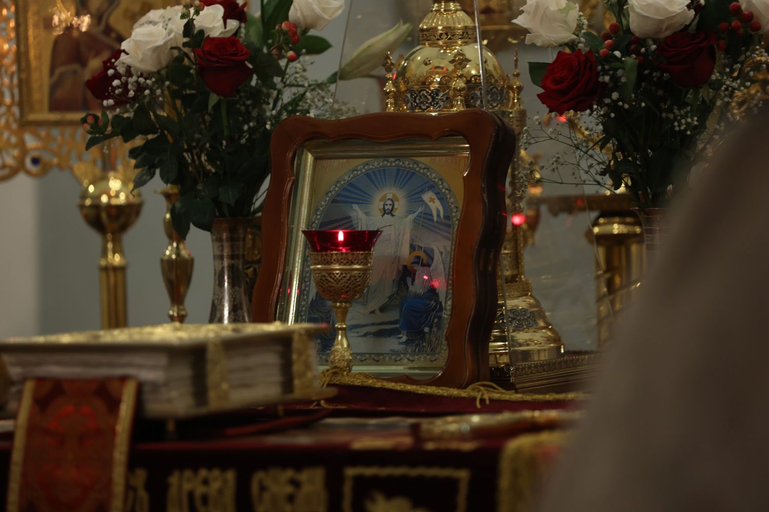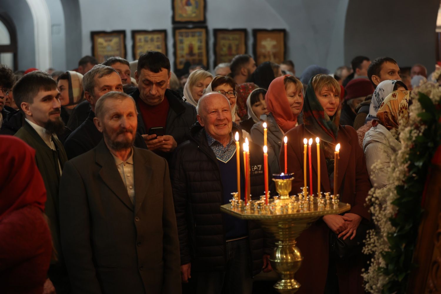 Весь храм во время заутрени был залит светом — по уставу перед началом пасхальной службы зажигаются «свещи вся и кандила» . На протяжении всей службы духовенство и прихожане приветствовали друг друга пасхальным возгласом: «Христос Воскресе!» — «Воистину Воскресе!»