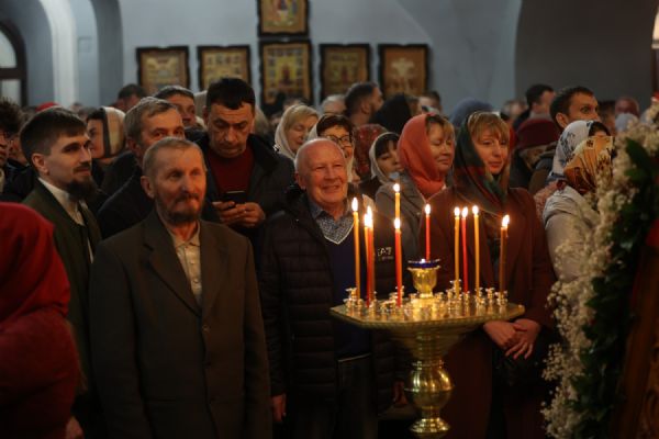 В ночь с Великой субботы на Светлое Христово Воскресение в Знаменском храме была совершена Пасхальная заутреня — самое торжественное и радостное богослужение церковного года. После крестного хода вокруг храма верующие встретили весть о Воскресении Христовом и приступили к праздничному богослужению .