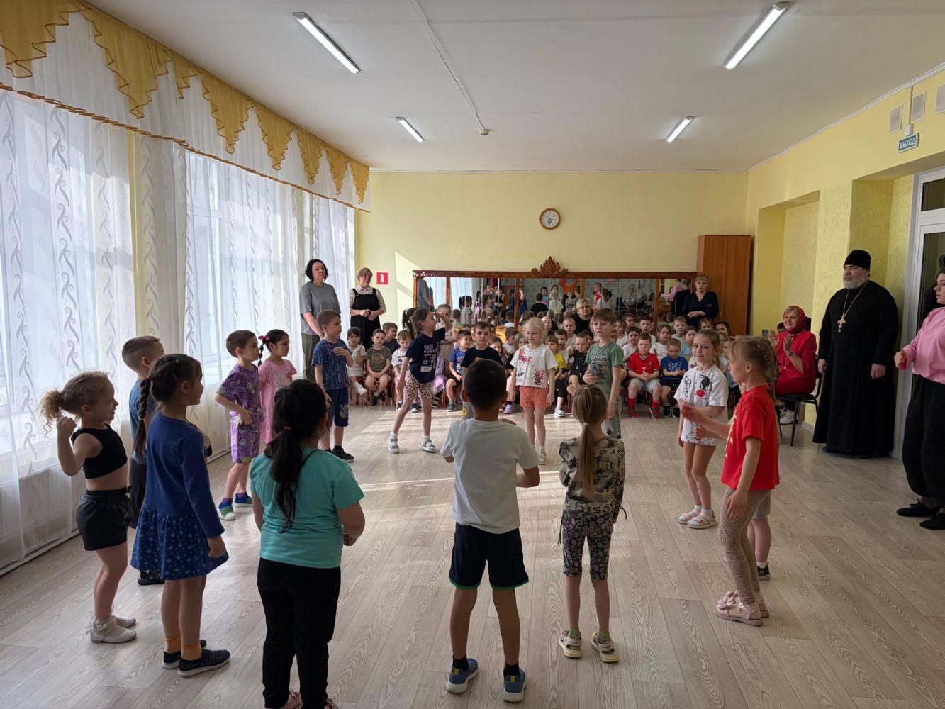 В свою очередь, воспитанники детского сада подготовили для гостей небольшой концерт. Зрители — священник, педагоги и сотрудники храма — щедро награждали юных артистов аплодисментами.