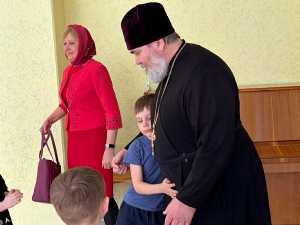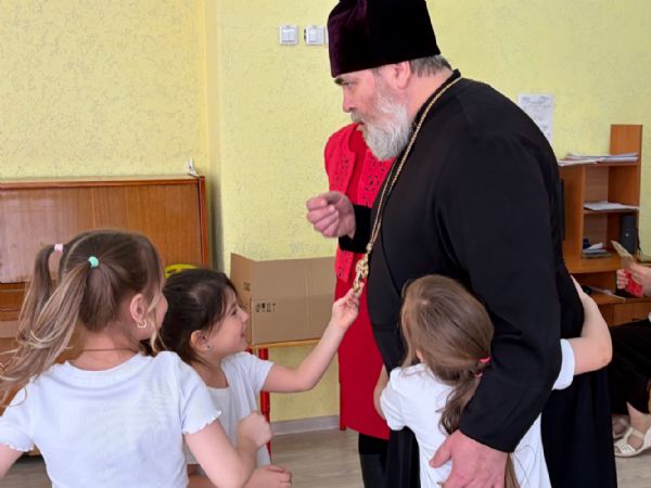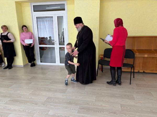 Малыши, забыв о стеснении, подбегали к протоиерею Игорю Смородину, обнимали его и наперебой благодарили за визит. Священник, растроганный такой искренней детской любовью, благословил каждого ребенка и еще раз поздравил их со Светлым Христовым Воскресением.