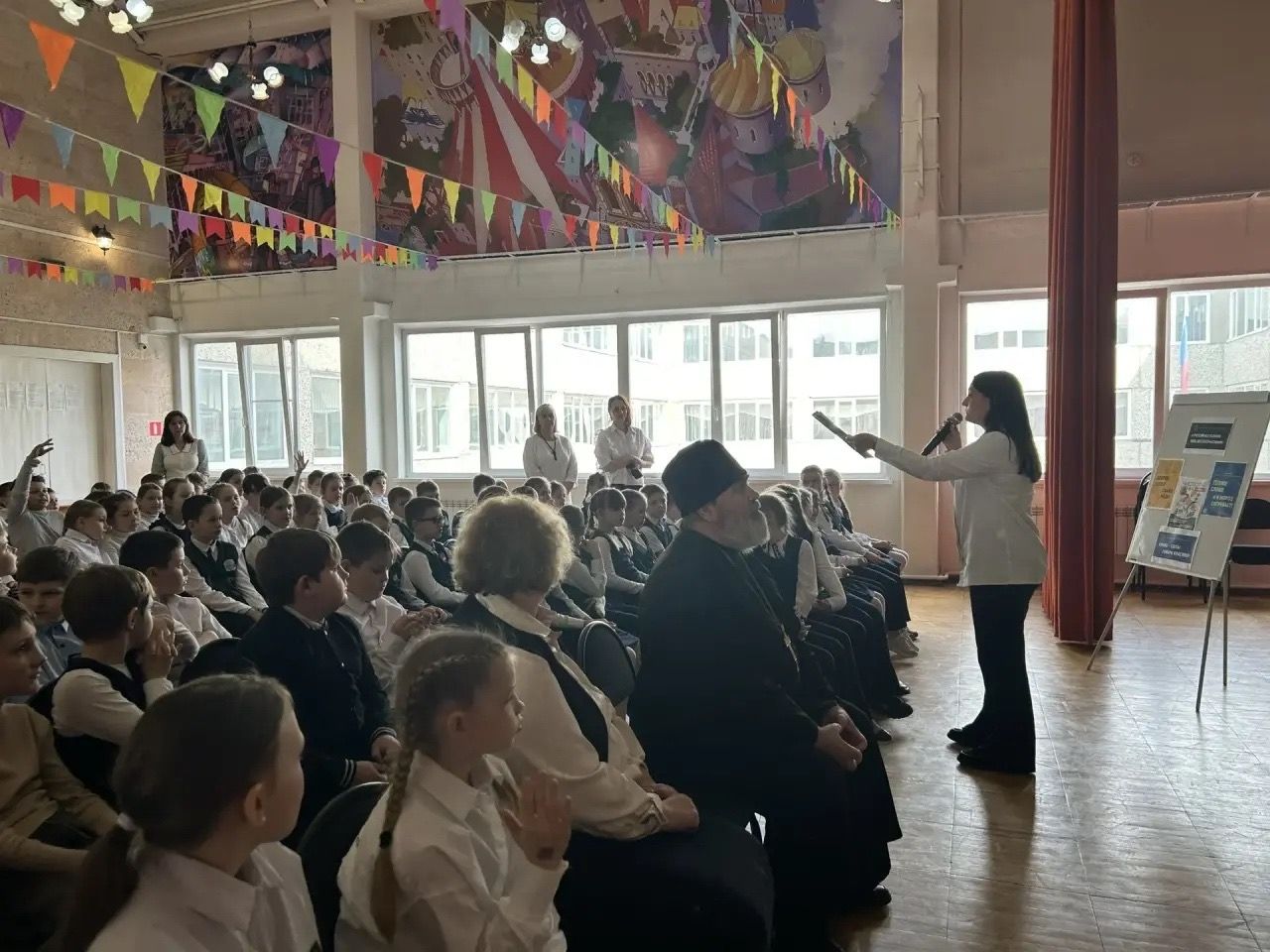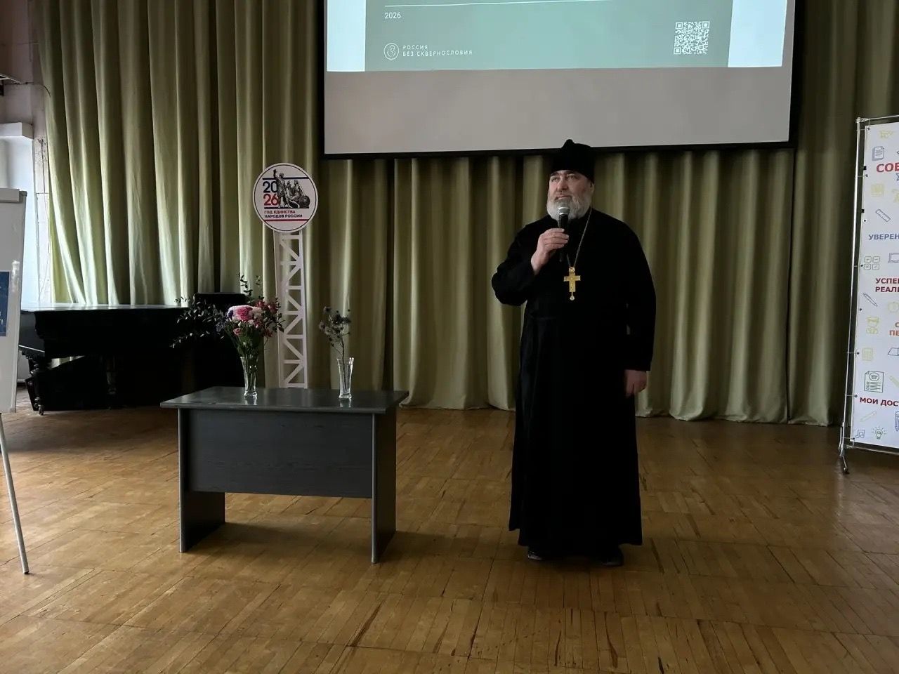 Особую духовную глубину встрече придало участие представителя Знаменского храма — штатного священника протоиерея Игоря Смородина. Отец Игорь пришёл специально, чтобы поддержать просветительскую инициативу и поделиться с ребятами своим взглядом на силу слова.