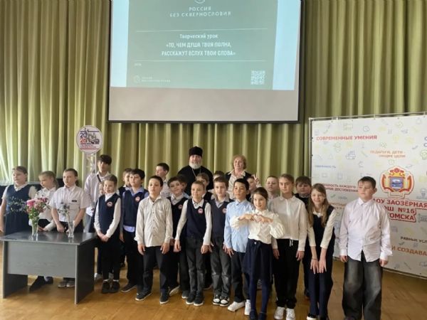 В школе №16 прошло занятие о чистоте родного языка при участии священника Знаменского храма
