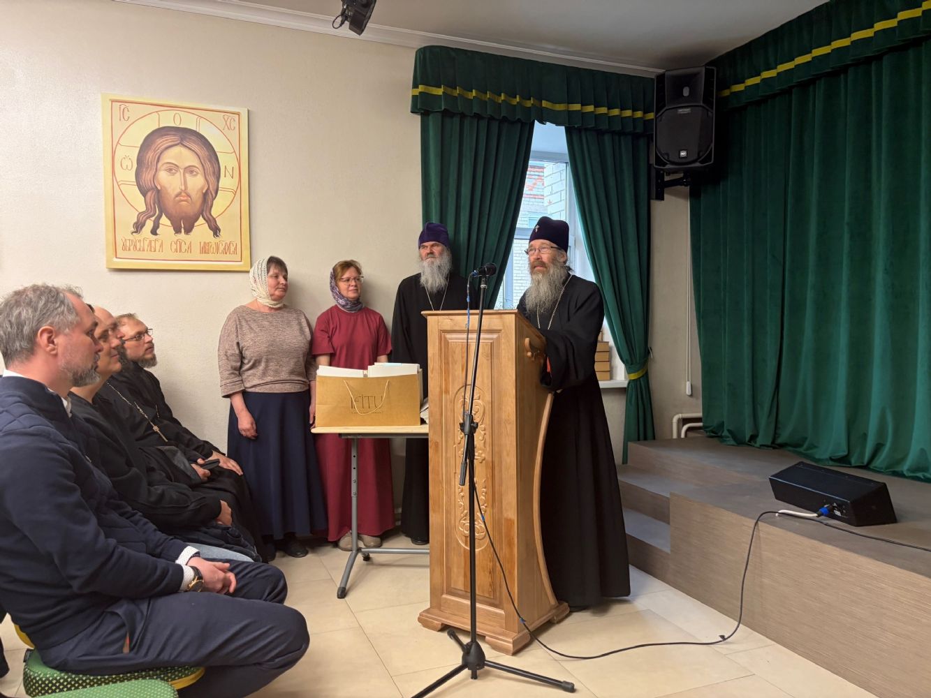 Встреча началась с радостного пасхального пения: собравшиеся пропели тропарь Пасхи «Христос воскресе из мертвых, смертию смерть поправ и сущим во гробех живот даровав».
